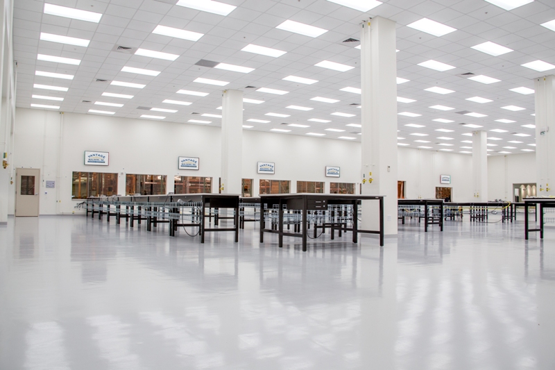 The upgraded shipping and receiving area has a quality control section and six new overhead doors that will help improve efficiency. The new manufacturing space has a custom HVAC system to ensure positive pressurization, a four-coat epoxy floor system and more than 200 2’x4’ LED light fixtures.
