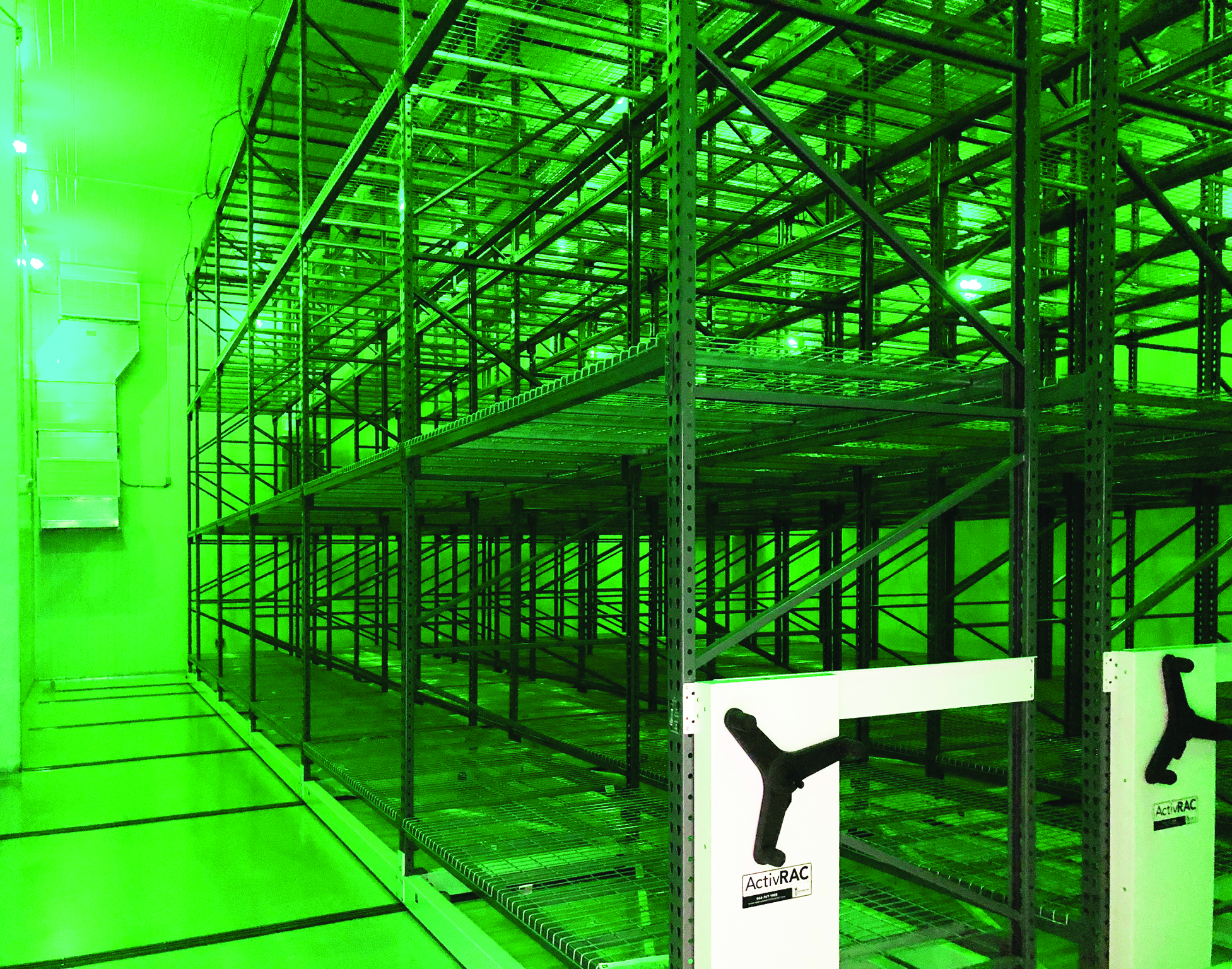 - Green lighting allows for staff to work safely around the room without disturbing the plants’ “sleep cycle.”