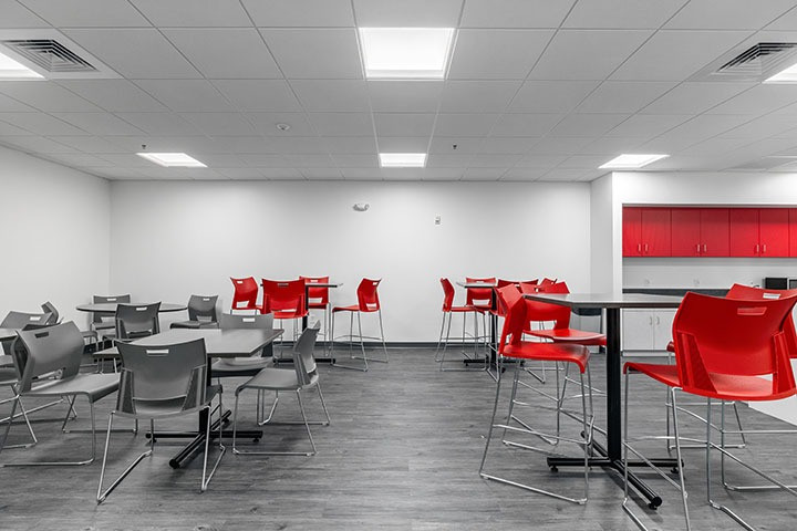 Quiet Logistics, a leader in third-party fulfillment solutions, expanded within its headquarters building and hired Vantage Builders for the build-out. Using a Design-Build model, Vantage acted as project lead, directing the team members from Vision 3 Architects, our subcontractors and Quiet Logistics’ internal resources. Vantage built a 27-foot high demising wall to separate the new office and warehouse sections. The office area features 20 renovated offices, meeting rooms ranging from small huddle rooms to a large conference room, and a new café area. The space has new ceilings, carpeting, paint, and laminate flooring, as well as new electrical and telecommunications/data. The newly renovated space combines seamlessly with the rest of Quiet Logistics’ presence in the building and creates a welcoming environment for employees and visitors alike.