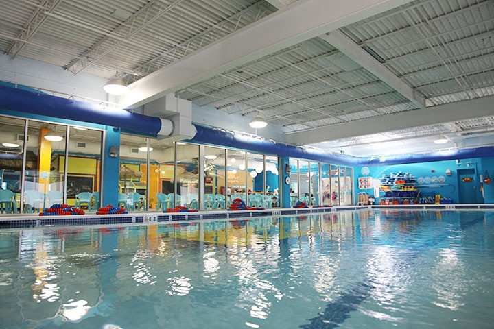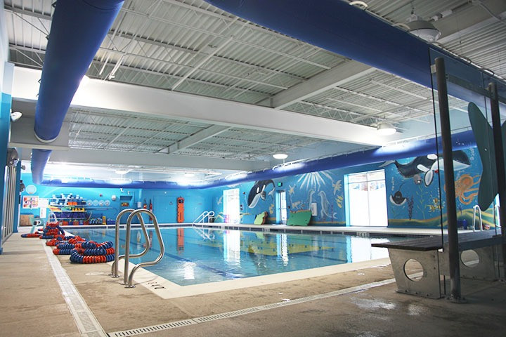 The learn-to-swim franchise opened its doors, providing indoor swim classes and programs to children aged four months and up. The centerpiece of the school is the 30 x 70 gunite pool, with water constantly maintained at a kidfriendly 90 degrees. Parents can watch the small group lessons no more than four children per instructor in a comfortable viewing area that runs almost the whole length of the pool. The view is provided by an enormous, tempered glass panel that is a half inch thick, nine-feet high and 80-feet long. The build-out required significant mechanical, electrical, plumbing and HVAC work. A powerful dehumidifying system from Seresco Technologies keeps the air dry and comfortable throughout the entire facility, despite the warm water temperature.