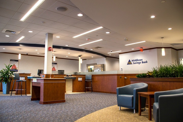 Vantage Builders renovated Middlesex Savings Bank's newest branch location, at 657 Main St. in Walpole. The branch, the bank's first outside its traditional retail footprint in MetroWest, features an open floorplan designed to serve customers in a friendly, inviting setting. Following designs by Margulies Perruzzi Architects, Vantage performed a complete interior renovation to create the functional, convenient, modern bank branch. The 3,500 square-foot project is the firm's third renovation for the bank.