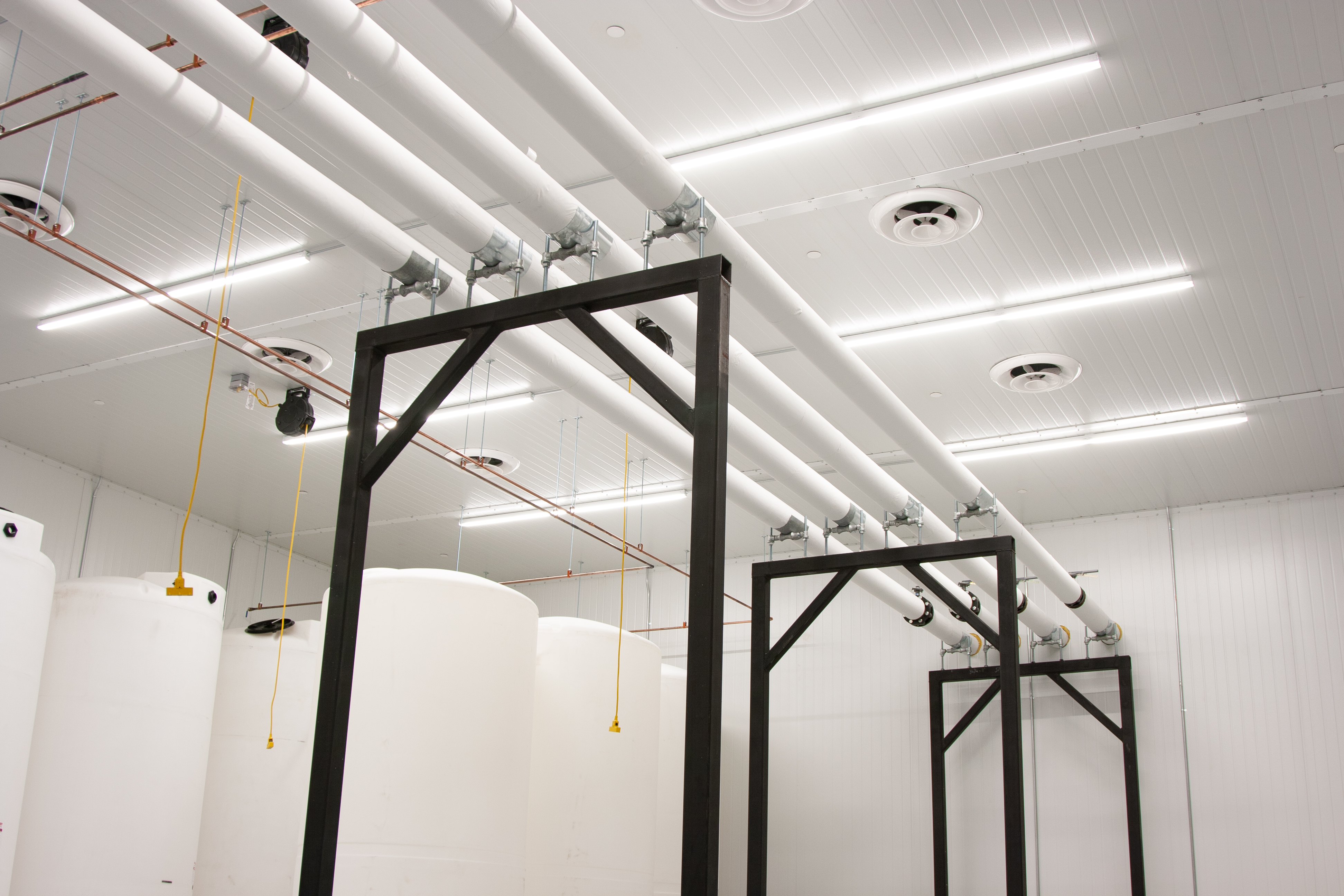 As critical as the grow procedures are, where Solar really differentiates itself is in its industrial-grade systems and keen focus on environmental impact. As its name implies, key to its operation is solar power, which will provide up to half of the building’s energy. The roof has 67,000 s/f of solar panels and there is an onsite, four-acre solar panel farm. Two 1.5 megawatt natural gas generators will provide the rest of the power, with a similarly sized diesel generator ready for backup. This redundancy ensures continuous operation. By owning its power generation and microgrid assets, consisting of the combination of solar arrays, battery storage, and cogeneration units, the company is able to achieve a much higher offset of carbon emissions compared to using industry-standard grid power.