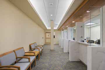 Vantage followed designs by Shepley Bulfinch architects on the project. Vantage converted the former office space on the first floor into new medical office space, with significant plumbing, HVAC, electrical and drywall work. Patients are greeted at the reception area, which features high-end, custom millwork, glass, corian counters, and ample lighting. Vantage built 26 exam rooms and six consultation rooms for NSPG staff to meet with patients. A phlebotomy area has its own reception space, private draw rooms and waiting room.