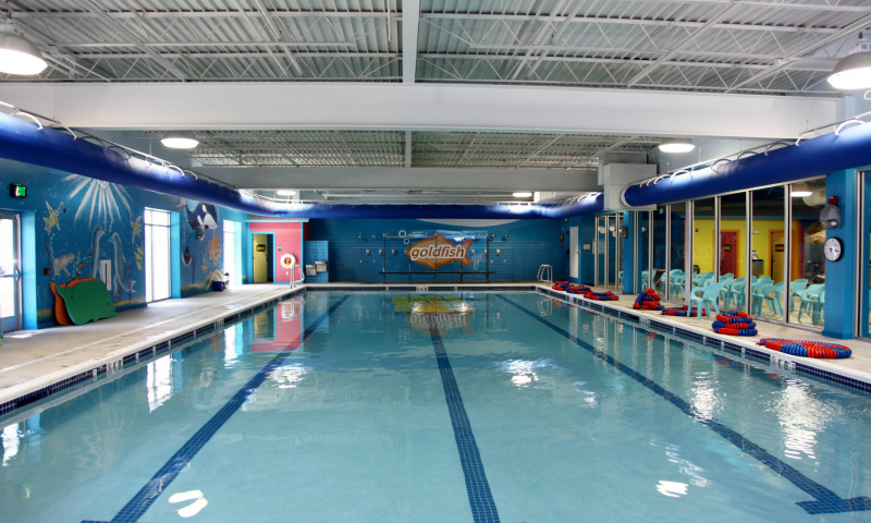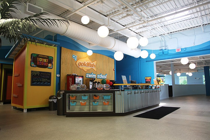 The learn-to-swim franchise opened its doors, providing indoor swim classes and programs to children aged four months and up. The centerpiece of the school is the 30 x 70 gunite pool, with water constantly maintained at a kidfriendly 90 degrees. Parents can watch the small group lessons no more than four children per instructor in a comfortable viewing area that runs almost the whole length of the pool. The view is provided by an enormous, tempered glass panel that is a half inch thick, nine-feet high and 80-feet long. The build-out required significant mechanical, electrical, plumbing and HVAC work. A powerful dehumidifying system from Seresco Technologies keeps the air dry and comfortable throughout the entire facility, despite the warm water temperature.