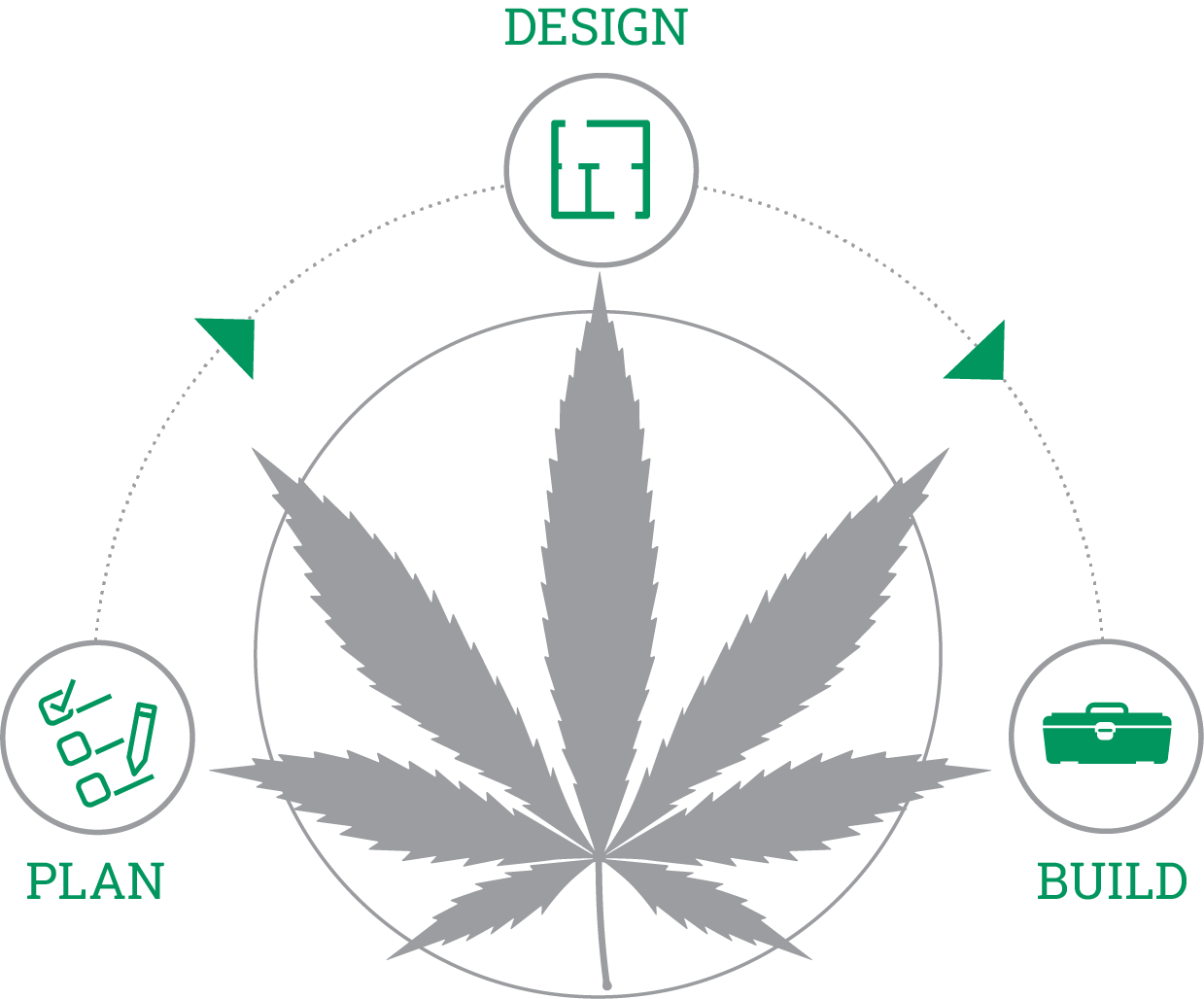 From the first consultation meeting, we work closely with our client to first understand their unique approach to cannabis cultivation and find out where they are in the process, including site selection, facility design, permitting and scheduling. We then assemble the best team – from architecture and design to engineering, lighting and HVAC – to complete the project. Our senior management team is directly involved in each cannabis engagement and we have strong relationships with the top contractors and specialty vendors in the industry to ensure the project’s success.