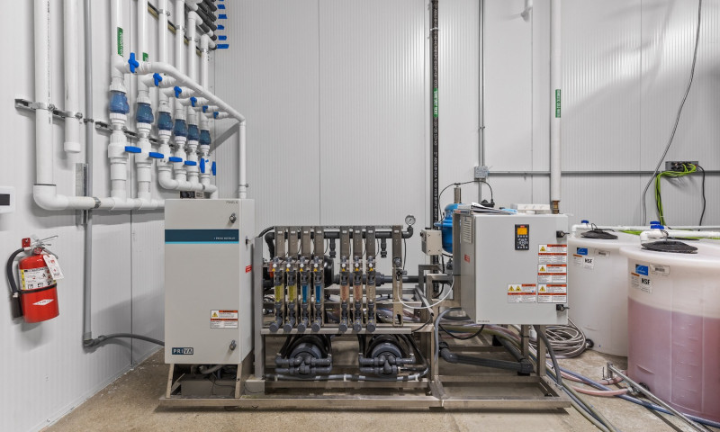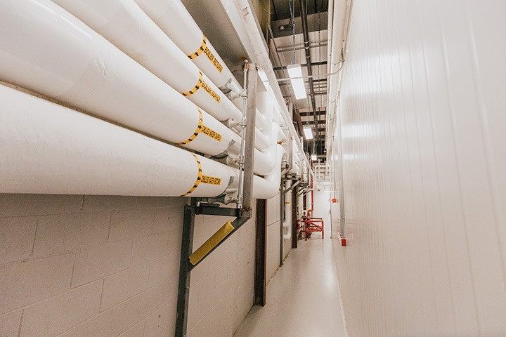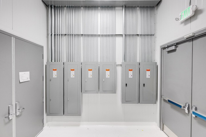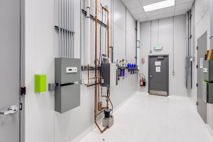 The 70,000-square-foot facility on Brayton Point Road in Somerset features a high-end retail dispensary, cultivation rooms, kitchen with four commercial ovens, office space and several support rooms for the processing, storage and shipping of cannabis products. The grow rooms feature separate temperature and humidity controls, air handlers that pump CO2-rich air and industry-leading LED lights from Fluence that simulate the sun’s intensity and activity. The roof has 67,000 sf of solar panels and there is an onsite, four-acre solar panel farm. Two 1.5 megawatt natural gas generators will provide the rest of the power, with a similarly sized diesel generator ready for backup. Security is a key concern and cameras keep a watchful eye in every room as well as around the building perimeter and parking lot. Multiple security nodes in the facility ensure that the systems never go down.